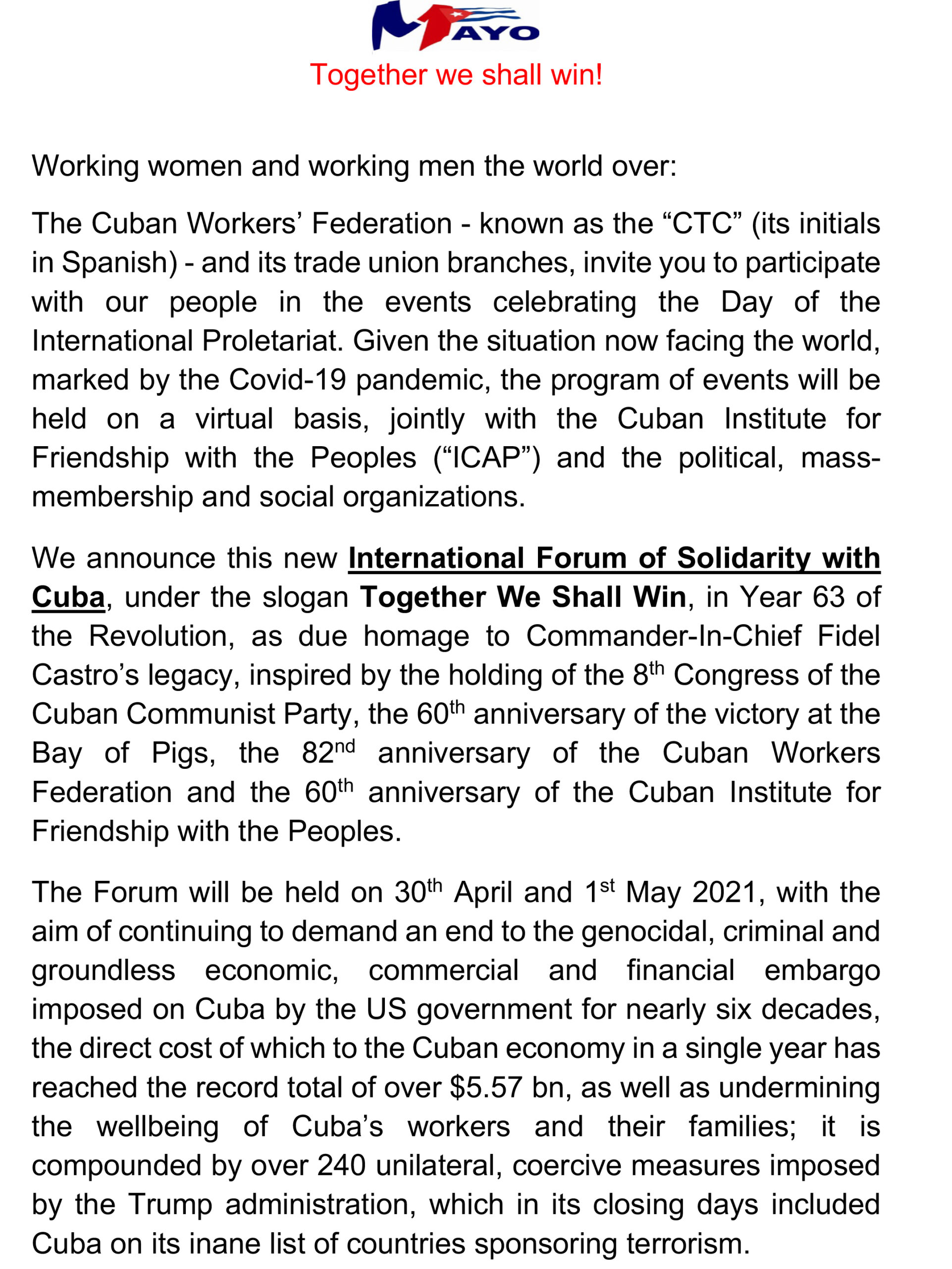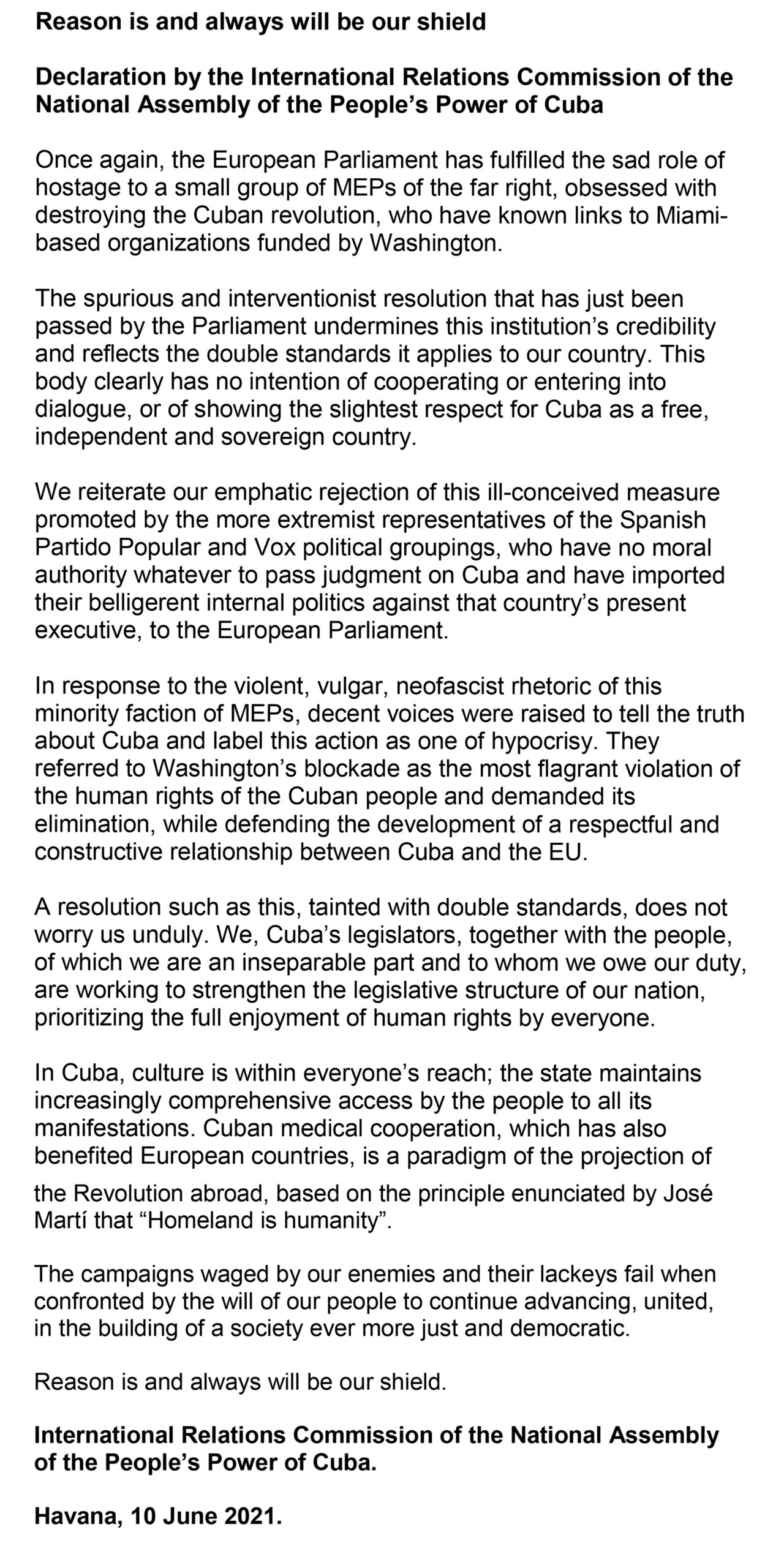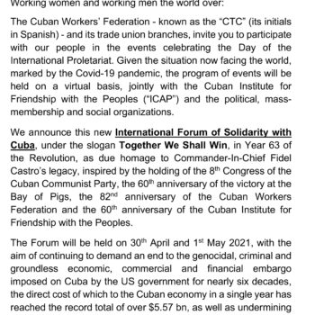 For Cuba, these restrictions magnify the many challenges imposed by the COVID-19 pandemic and multiply its devastating socioeconomic, health-related and financial impacts. The measures have repeatedly hampered the arrival of humanitarian aid in the country which, in the context of addressing the pandemic, is immoral and unjustifiable and highlights the embargo’s criminal nature.