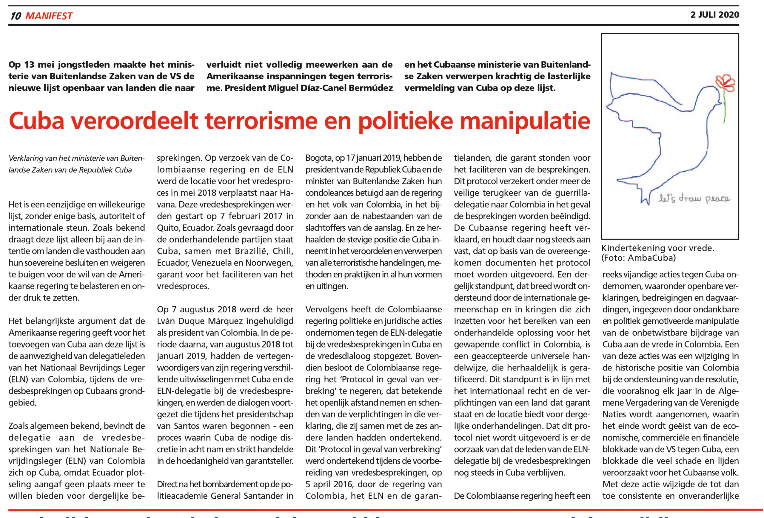 Tevens actie: “Stop de onmenselijke blokkade van Amerika tegen het Cubaanse Volk”.