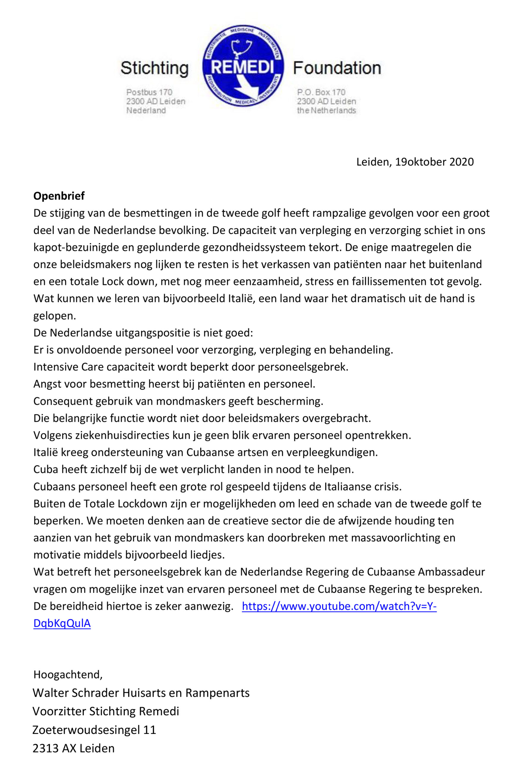 4) Medische hulp van Cuba aan diverse landen om het Corona Virus te bestrijden .