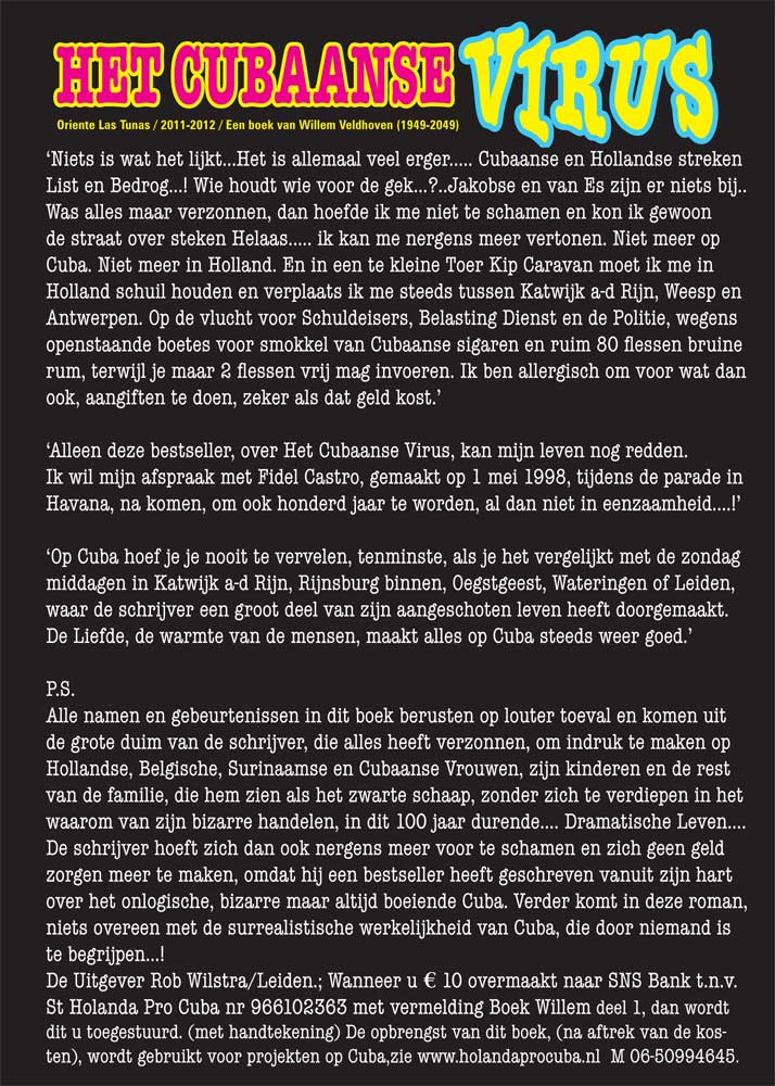 Willem Veldhoven, Het Cubaanse Virus, Roman deel 1 en 2, 12 euro per deel (incl. verzend)