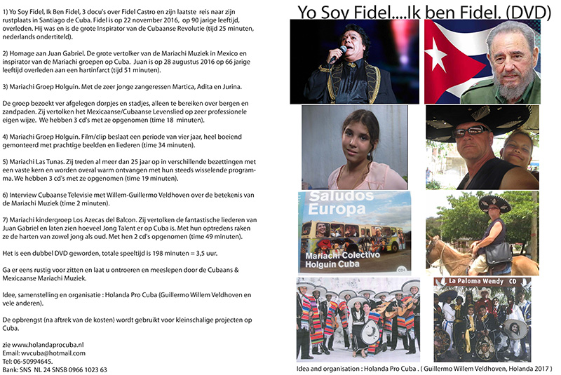 Wanneer U 15 euro over maakt naar stichting Holanda Pro Cuba, Bank nr NL 14 SNSB 0966 102363 met vermelding van Docu Yo Soy Fidel dan wordt de film u toegestuurd.